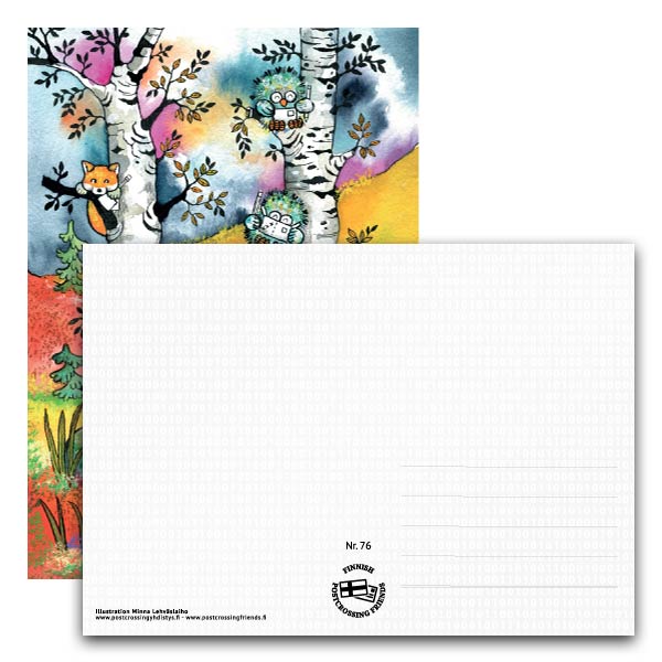 Sarja sisältää kaksi postikorttia. Korttien kuvittajat ja suunnittelijat ovat Minna Lehväslaiho ja Titta Lindström.
